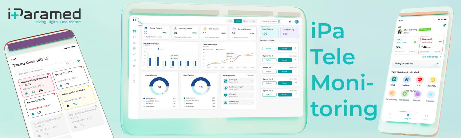 iParamed là doanh nghiệp tiên phong tại Việt Nam trong lĩnh vực theo dõi sức khỏe từ xa, ứng dụng sâu công nghệ Internet of Medical Things (IoMT) vào hệ thống tele-monitoring trong thực hành y khoa. Thành lập năm 2020 bởi đội ngũ kỹ sư và chuyên gia trẻ, iParamed tập trung phát triển các giải pháp giám sát tim mạch và hô hấp, giúp chuẩn hóa quy trình theo dõi liên tục và hỗ trợ ra quyết định lâm sàng chính xác hơn.