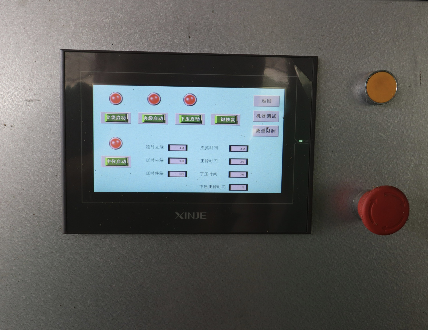 Máy đóng túi điều khiển tự động theo chương trình nghĩa là sau khi lắp túi nhựa pp vào chổ lấy nguyên liệu (mùn cưa đã ủ), thiết bị ly hợp khác của máy sẽ quay động cơ dưới sự điều khiển của máy vi tính của máy để làm cho bề mặt nguyên liệu của miệng túi mịn hơn mà không làm đổ nguyên liệu.