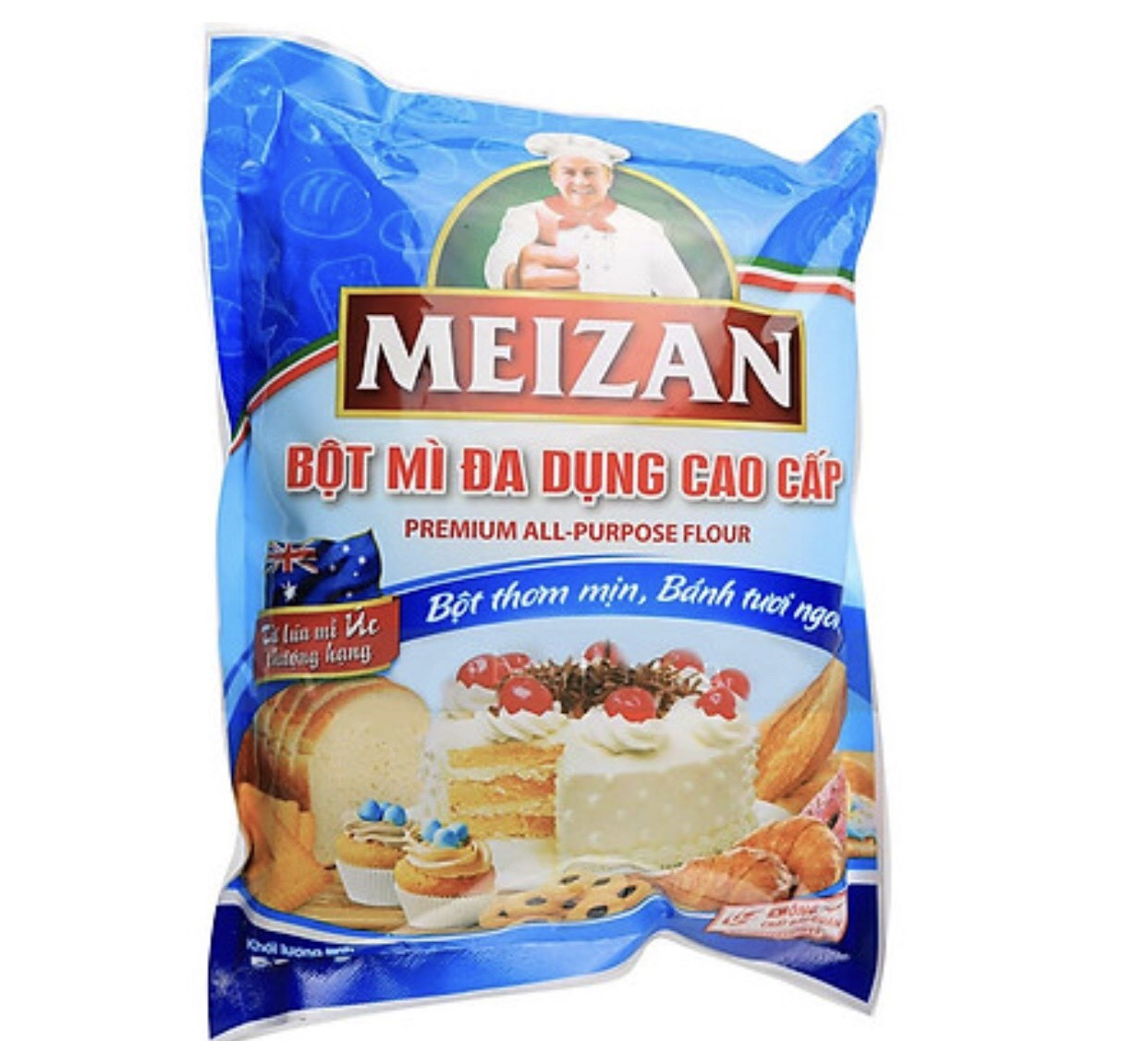 Bột mỳ đa dụng (All Purpose Flour/Plain Flour) là loại bột được sử dụng rộng rãi nhất trong nhiều công thức làm bánh khác nhau. Loại bột này được nghiền từ hạt lúa mỳ cứng (hard) hoặc mềm (soft) tạo ra thành phần protein trung bình từ 10 – 12% protein.